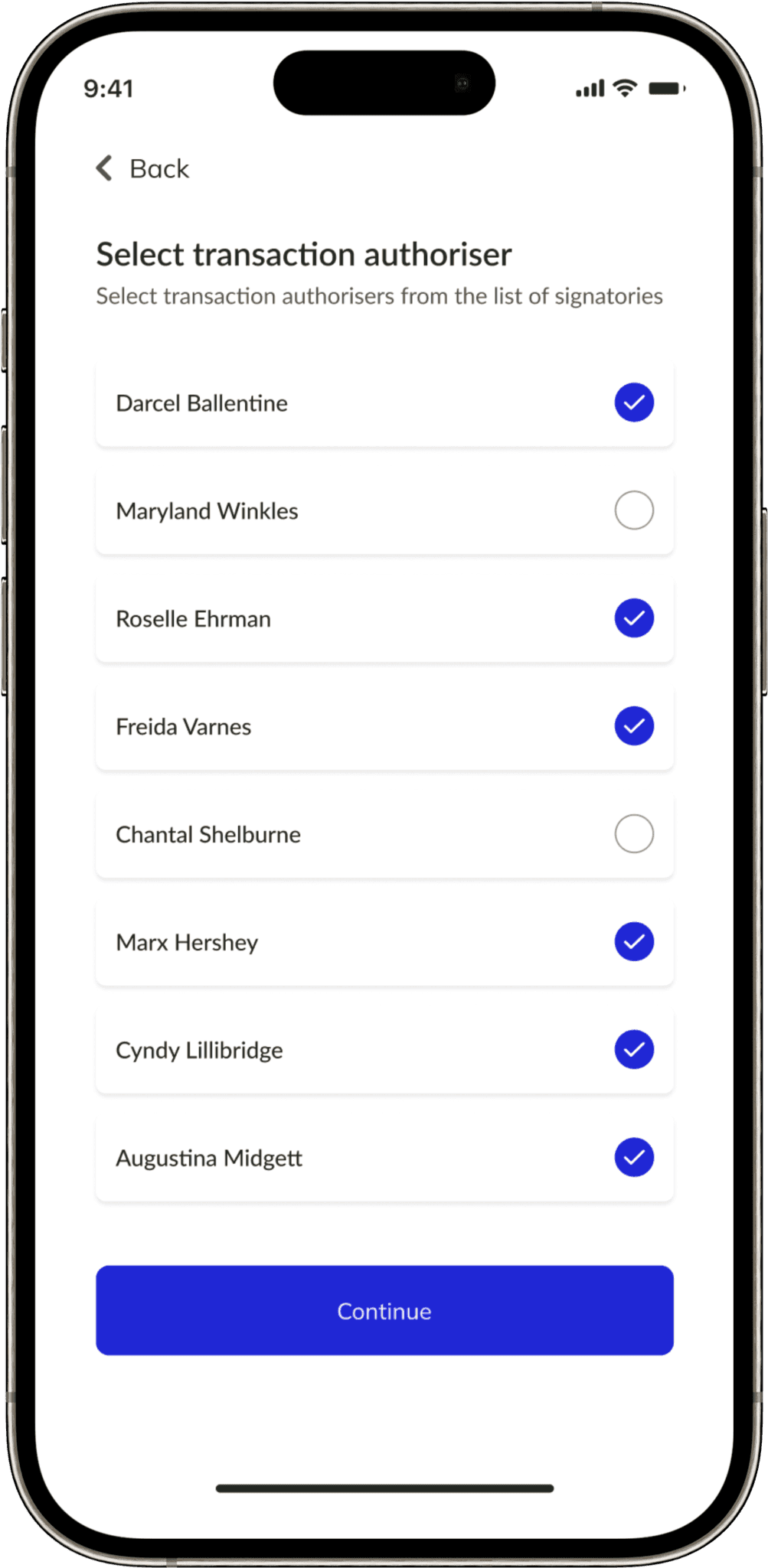Admin selects transaction authorisers