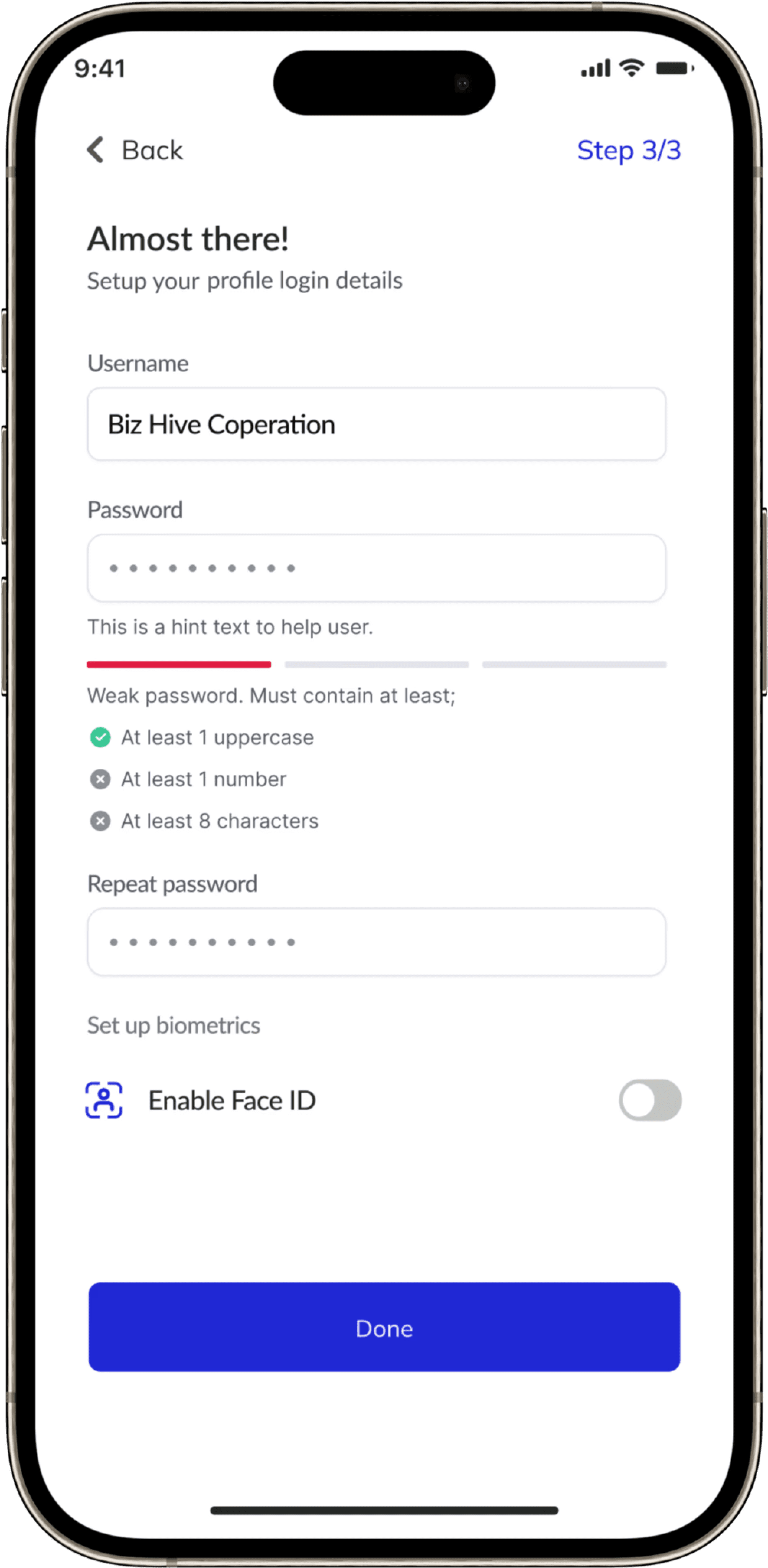 Clear, step-by-step onboarding with visible progress to reduces cognitive load and increases completion confidence
