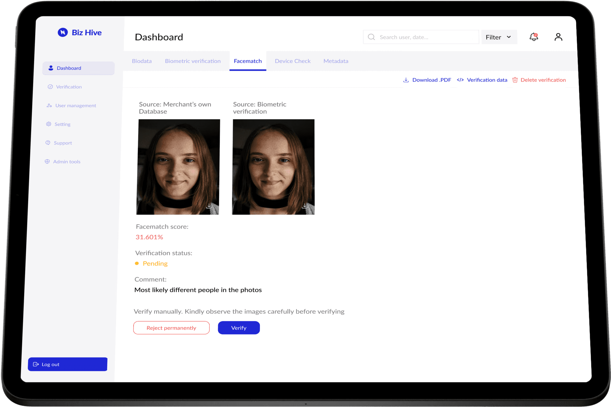 To address this, we built a dashboard for Admins to manually review, approve, or reject failed verifications and requested affected customers to retake the test.